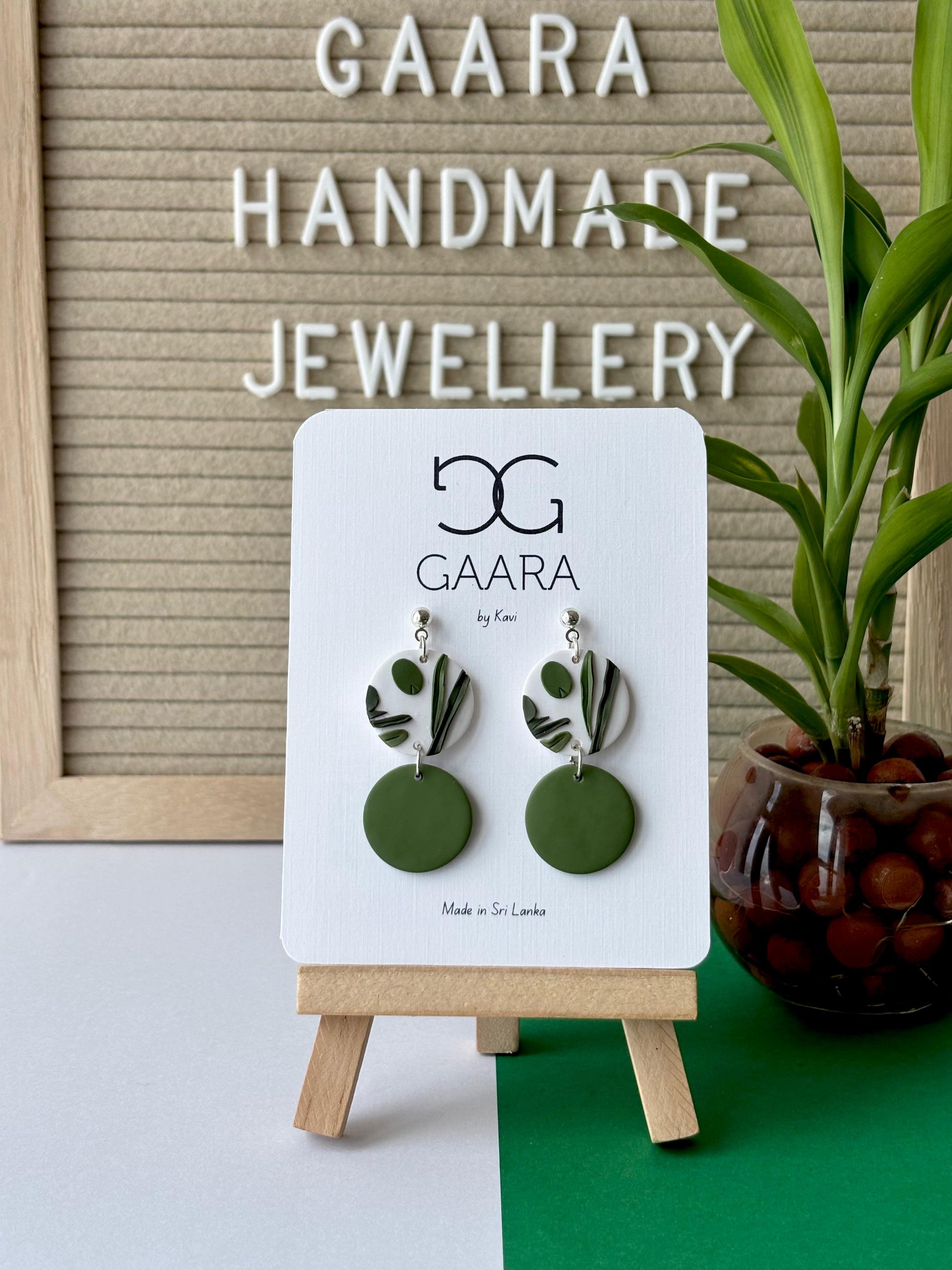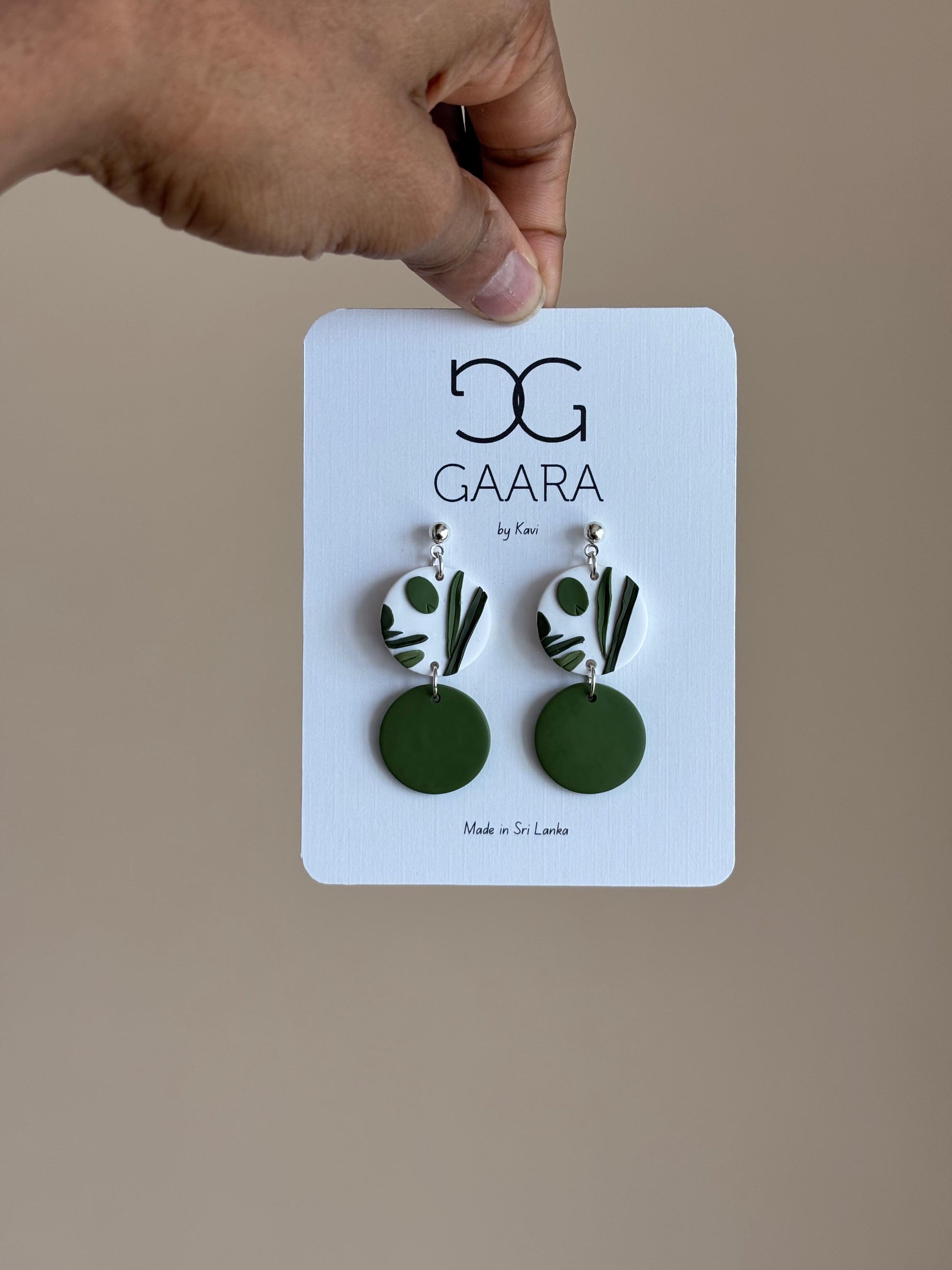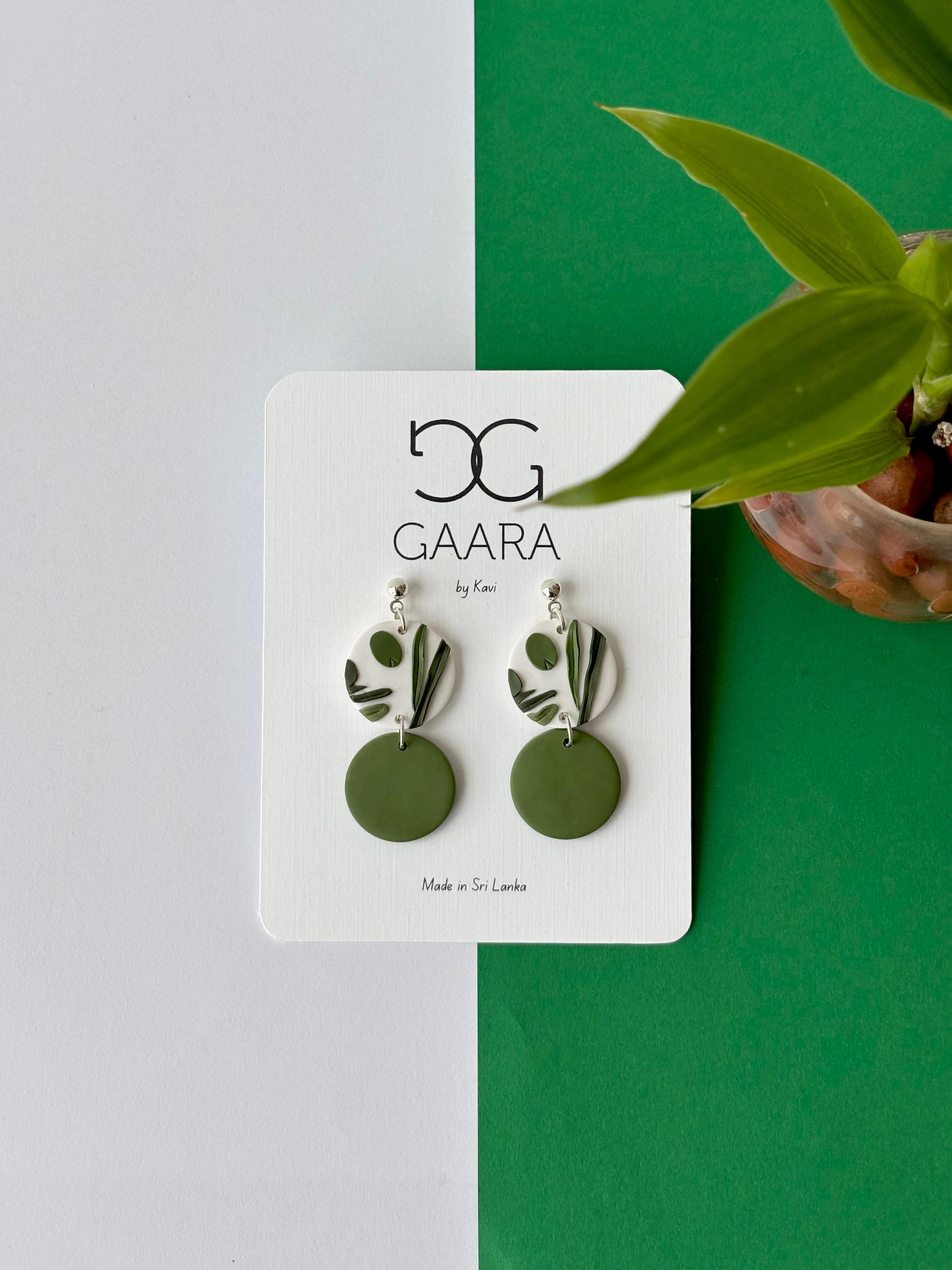 Inspired by nature, these botanical drops blend soft white tones with lush olive greens for a fresh, effortless look.