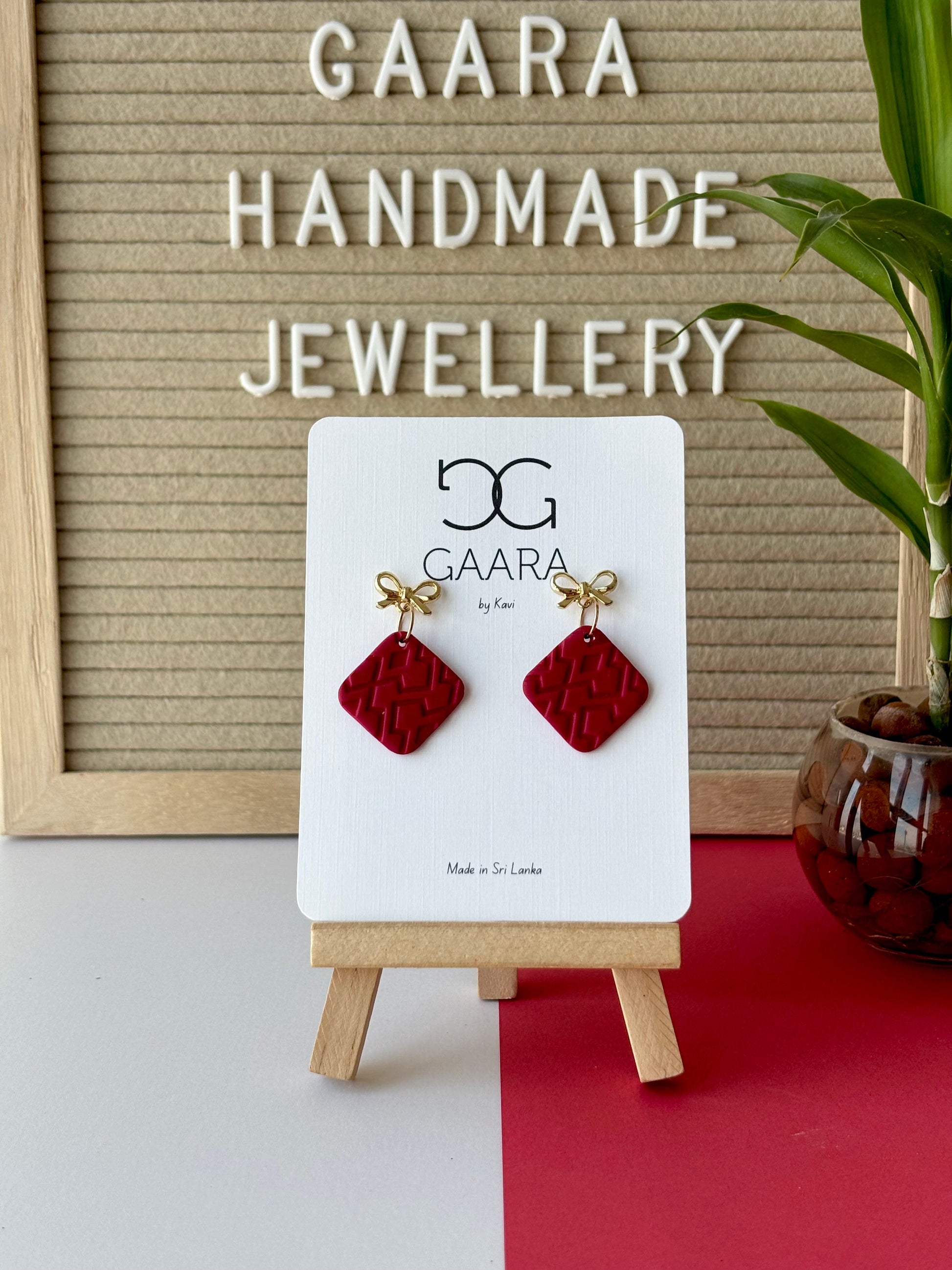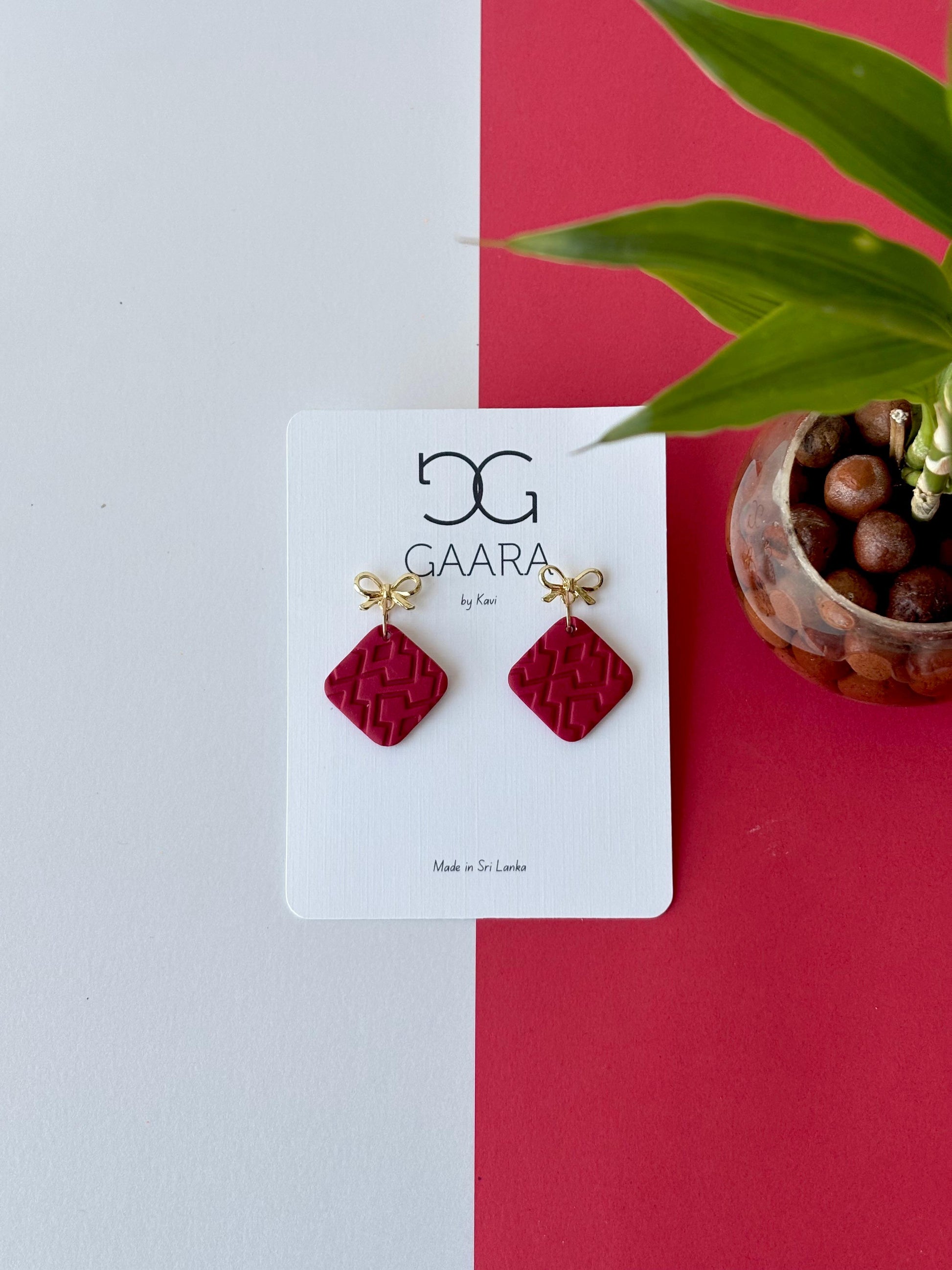 Gift Boxes is featuring textured crimson squares finished with delicate gold bow studs, this pair captures the joy of giving and receiving love.