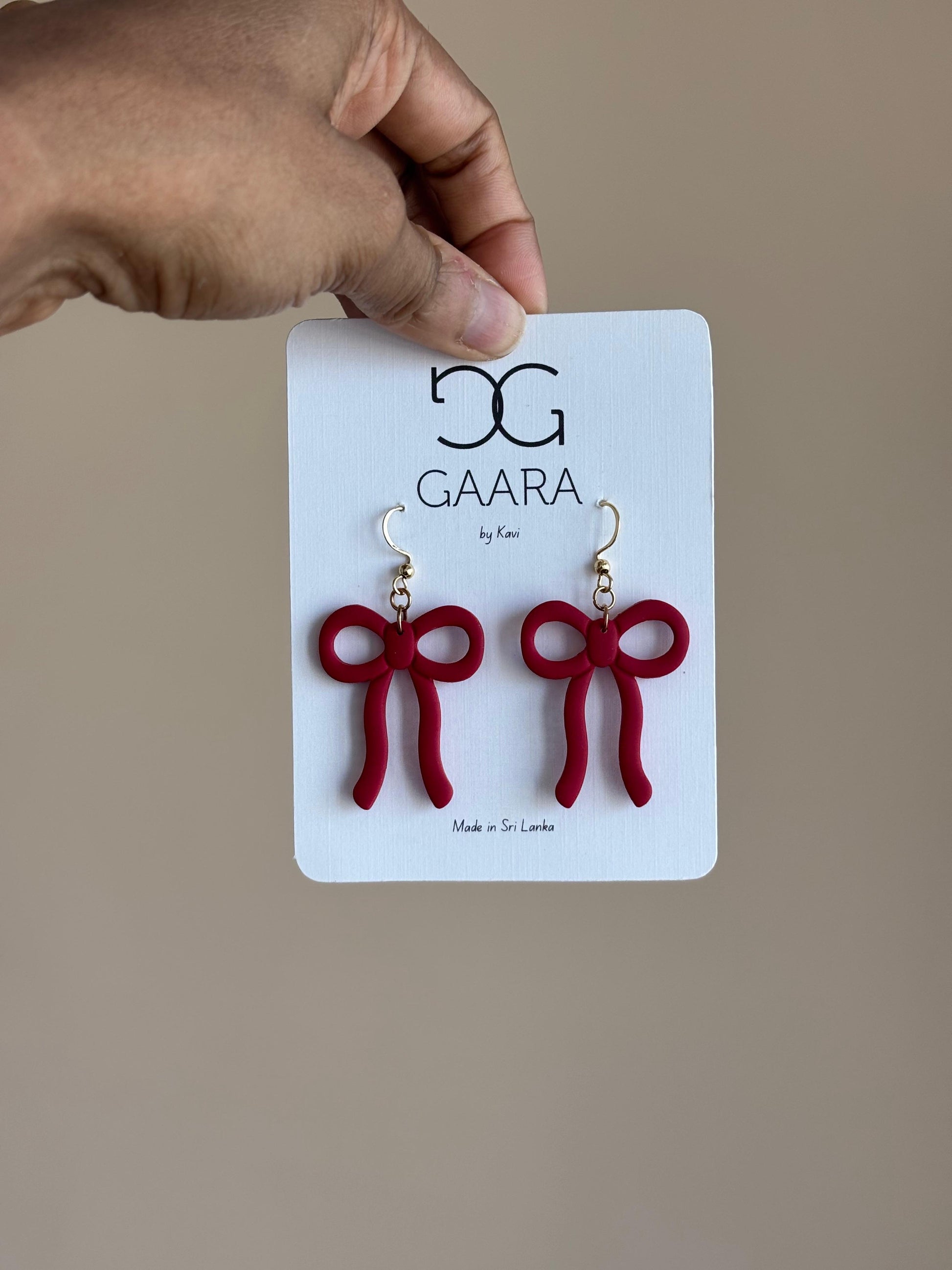 Featuring in a rich crimson shade, this elegant pair adds a charming and feminine touch to any look.